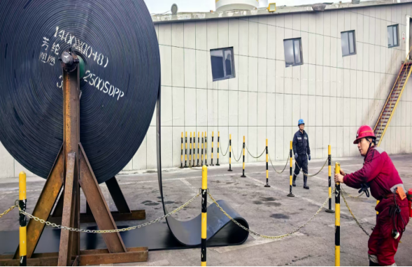 施工期間,礦區最低氣溫達零下12攝氏度,寒風凜冽。全體施工人員以“保安全、搶進度、提質量”為目標,嚴格執行安全技術措施,有序推進展帶、硫化接頭、回收舊帶、鋪設新帶等關鍵工序。機電管理部全程跟班指導,緊盯硫化接頭與新帶鋪設等核心環節,確保每道工序質量達標;運轉隊人員不畏嚴寒、協同作業、日夜奮戰,在確保安全質量的前提下,較原計劃提前一天完成任務。本次更換的芳綸輸送帶采用直徑直緯編織的特殊材料,相比傳統鋼絲繩芯輸送帶,具有防撕裂性更優、抗拉強度高、耐磨性強、重量輕、耐寒耐腐蝕等優點,投運后有助于實現節能降耗,提升主運系統運行穩定性與運輸效率,對公司高效穩定發展具有重要意義。