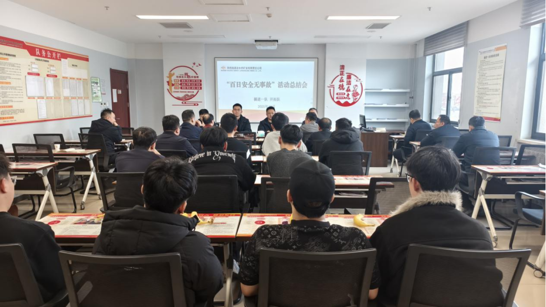 近日,掘進一隊、開拓隊在學習室聯合組織召開2025年度“百日安全無事故”活動總結會議。公司黨委委員、紀委書記,副總經理敬毅,包保部門(區隊)負責人,職工代表等參加會議。