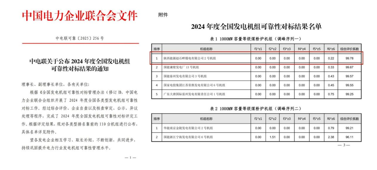 9月12日,從中國(guó)電力企業(yè)聯(lián)合會(huì)傳來(lái)消息,趙石畔煤電2號(hào)機(jī)組從175臺(tái)參評(píng)機(jī)組中脫穎而出,以總分第一的成績(jī)榮獲1000MW等級(jí)燃煤機(jī)組“2024年度全國(guó)發(fā)電機(jī)組可靠性對(duì)標(biāo)標(biāo)桿機(jī)組”的稱號(hào)。這是繼實(shí)現(xiàn)中電聯(lián)能效對(duì)標(biāo)榮譽(yù)“大滿貫”后,該公司斬獲的又一國(guó)家級(jí)榮譽(yù),彰顯了其在保障電力供應(yīng)、推動(dòng)行業(yè)高質(zhì)量發(fā)展中的標(biāo)桿地位。